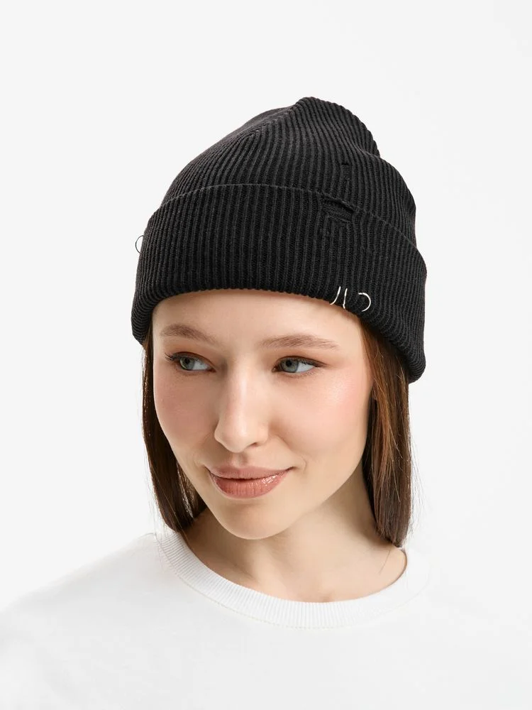 Шапка Ribelle — это практичная двухслойная модель из акрила, которая сочетает уют с современным дизайном. Ее регулируемый отворот с рваным краем и металлическими кольцами в качестве украшений создает выразительный и необычный акцент. Благодаря универсальности и продуманной конструкции она станет стильным и функциональным дополнением гардероба.